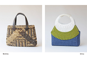 深井志乃 他ペーパーヤーンの織のバッグ、木のバッグ、